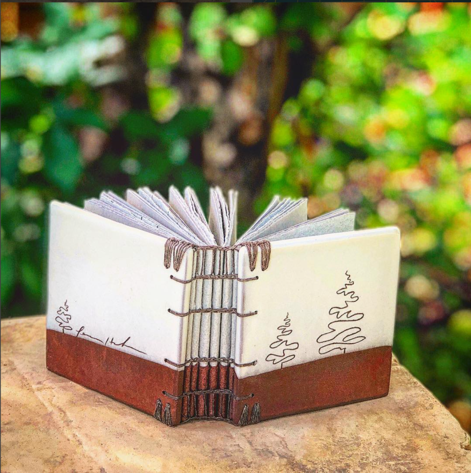 The practice of ceramics and bookbinding are both rooted in ancient methods. The book is a container for thoughts, ideas, memories, emotions. Likewise, ceramics are containers too – vessels that have long been used for safe storage of sustenance. Both book and ceramic are functional objects that frequently serve in sacred ways.